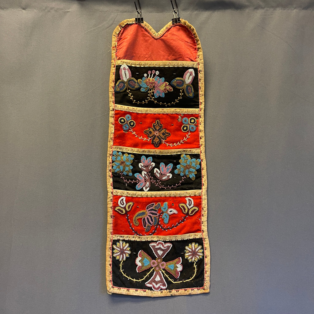 Antique Chippewa Beaded Silk and Velvet Wall-Hanging Storage Pockets, Authentic Native American - ca. 1890s (GM149)