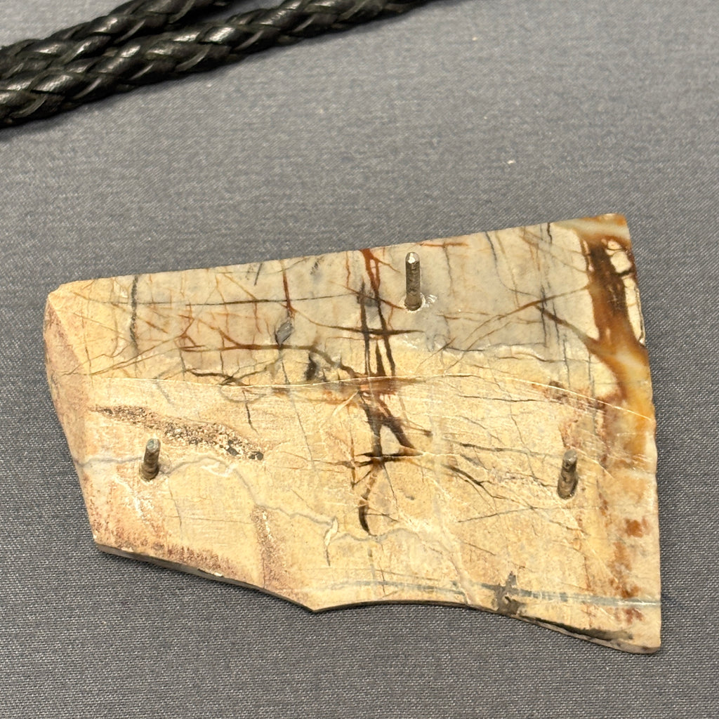 Materials: sterling silver, turquoise, red coral, black jet, mother of pearl, lapis, leather