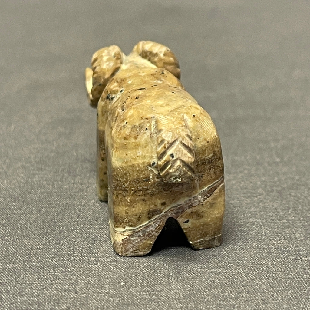 This sturdy-looking Zuni ram fetish is carved from marble and has blue beaded eyes. Unsigned. Vintage.