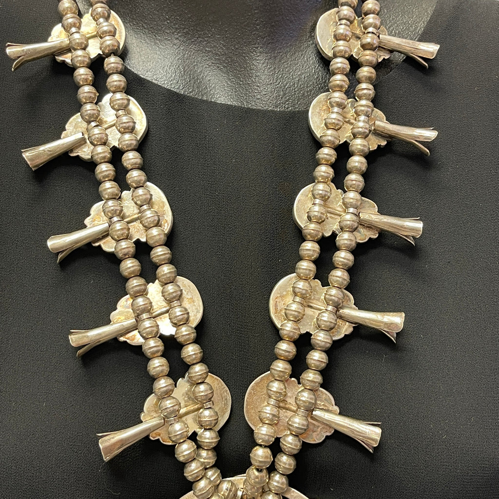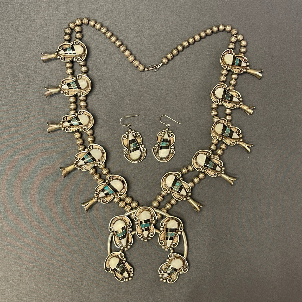 Genuine Vintage Navajo Flush Inlay Squash Blossom Necklace with Matching Earrings (GSP15)