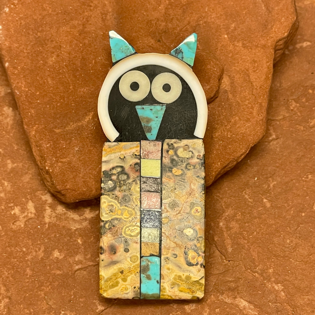 Mary Tafoya, Kewa (Santo Domingo) Pueblo Multi-Stone Mosaic Owl Pin/Pendant (5/254)