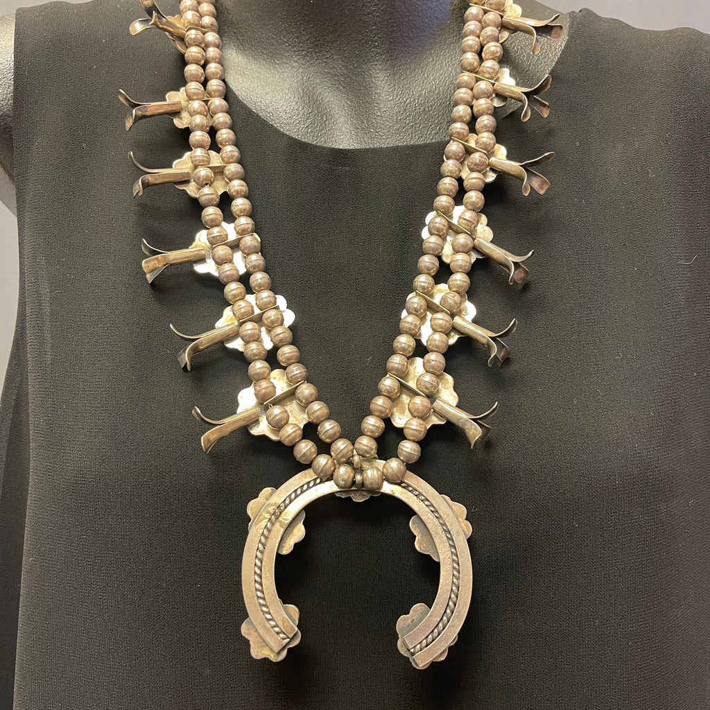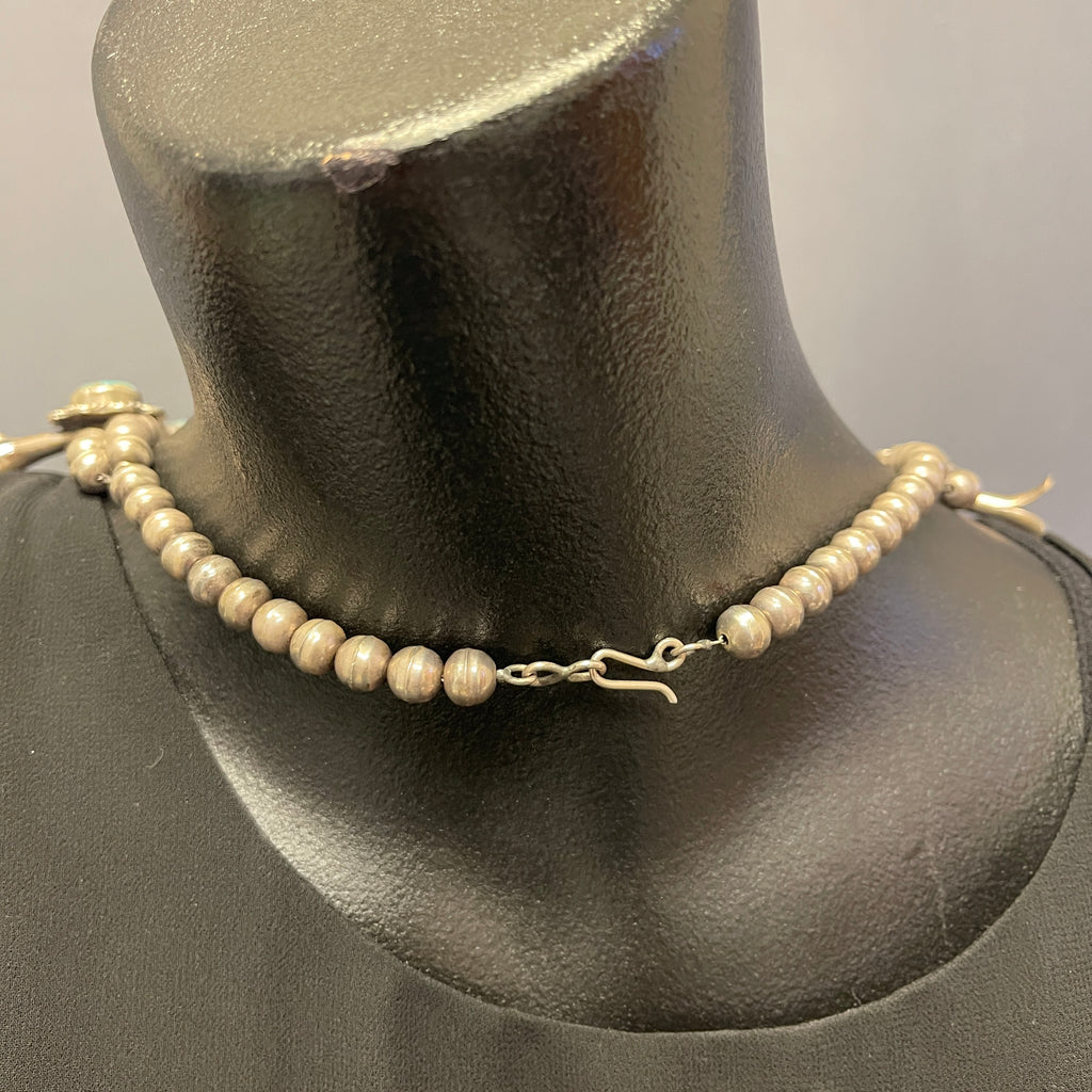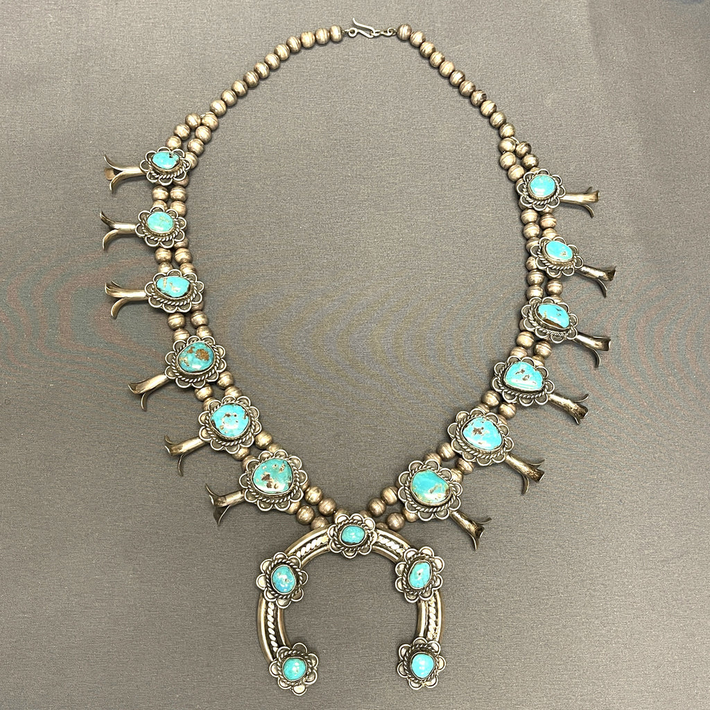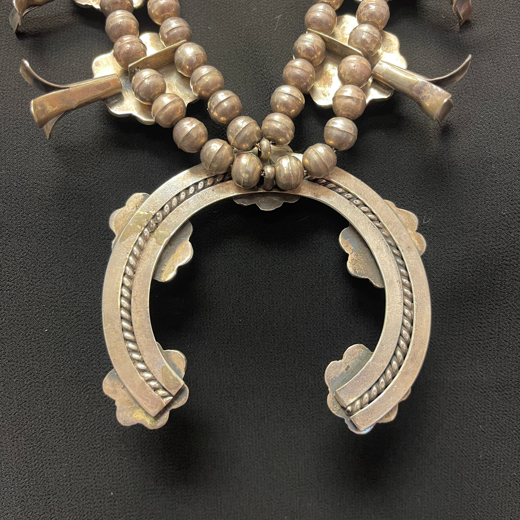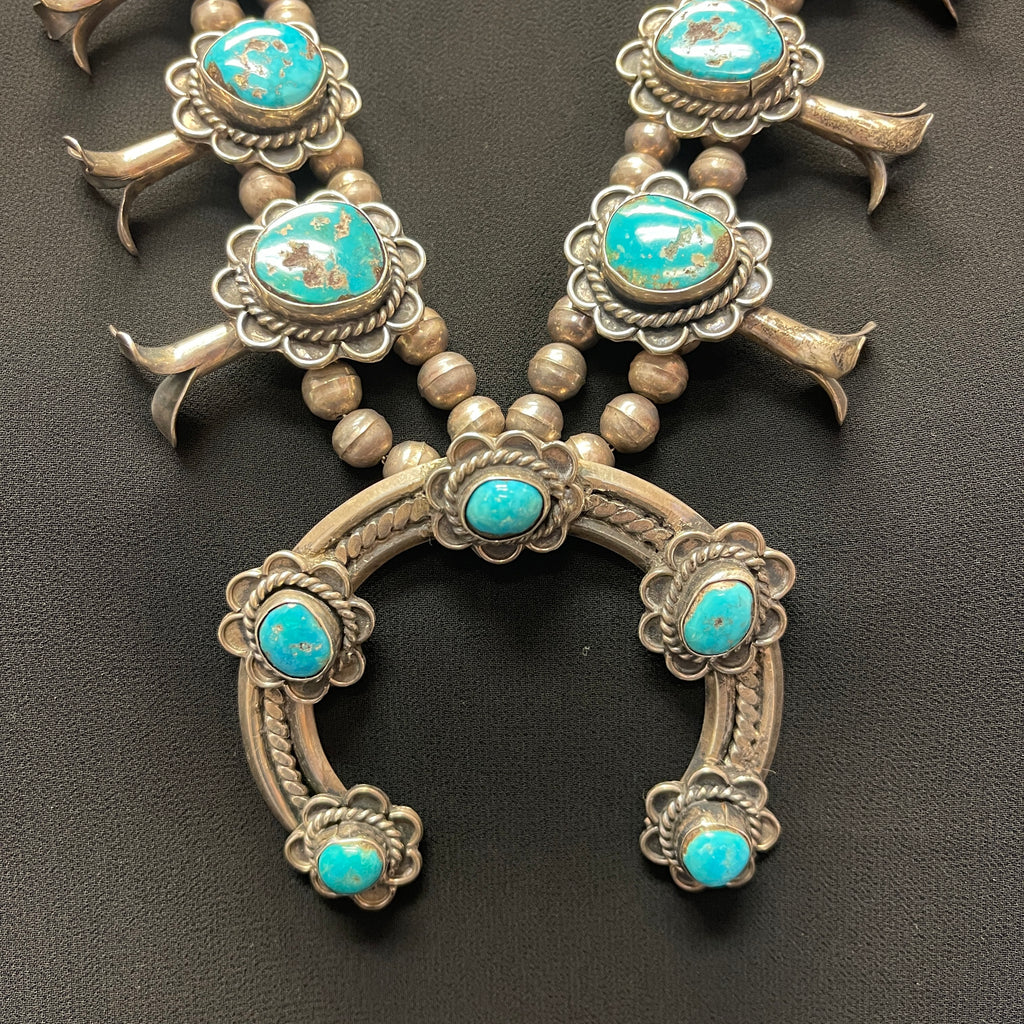Vintage Navajo Squash Blossom Necklace with Turquoise Stones, authentic Native American (GSP4)