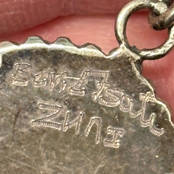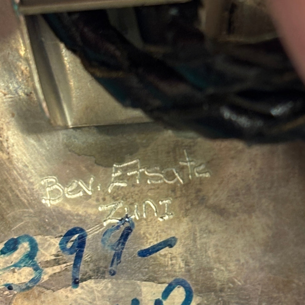 Beverly Etsate is the daughter of Rosalie and Augustine Pinto, who were known for their intricate inlay work.  She has been making jewelry for nearly forty years, and she is well known for including Kachinas and dancers in her designs.