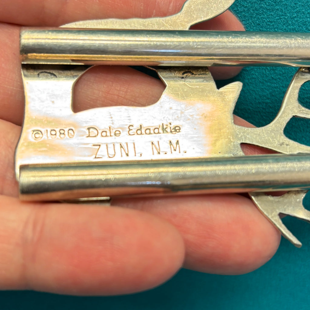 Dale Edaakie is the son of Dennis & Nancy Edaakie, the famous Zuni inlay jewelers, and the third generation in a prominent family of inlay jewelry artists at Zuni Pueblo. While Dale Edaakie’s parents are best known for their amazing bird inlay, Dale has taken his work one step further by adding wildlife to his repertoire. He was inspired to do so after seeing an impressive elk standing by the side of the road. Today, Dale considers himself a “wildlife artist,” creating fabulous inlay pieces with stunning detail.