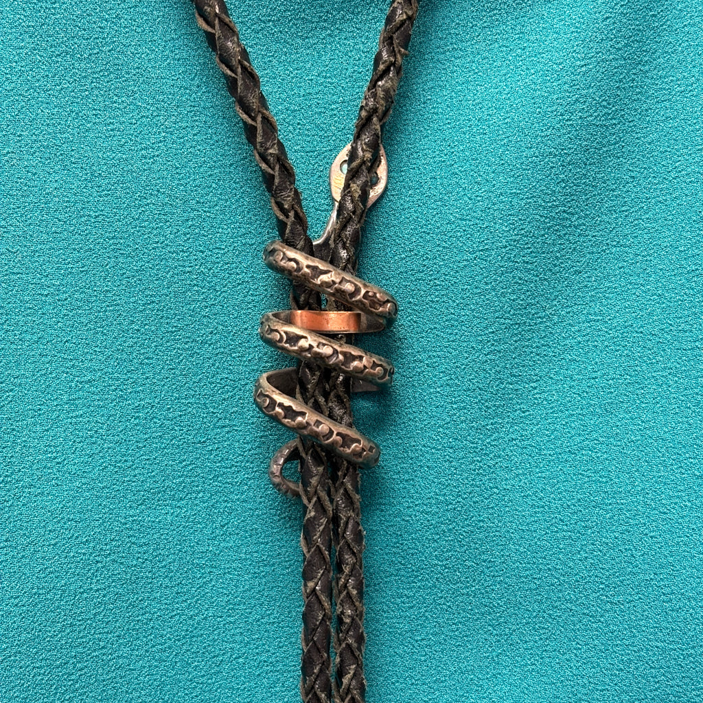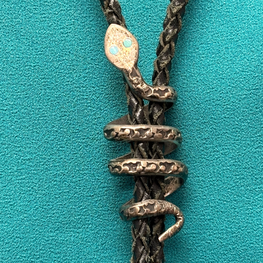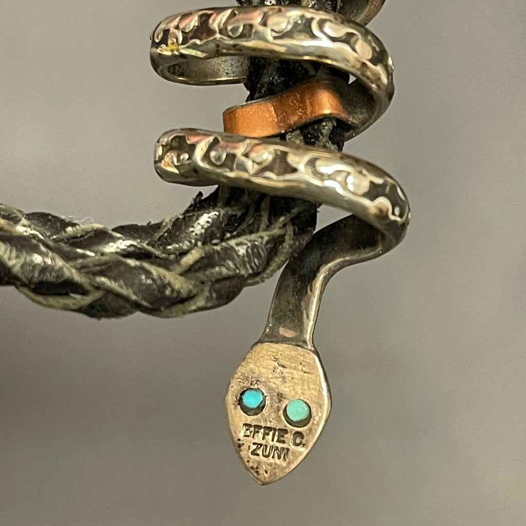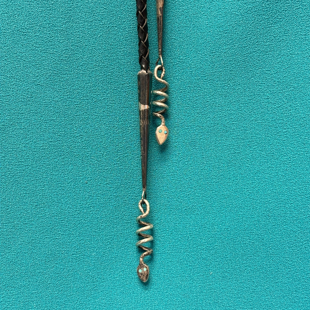 Effie Calavaza Vintage Zuni Snake Bolo with Matching Snake Tips, authentic Native American (JF104)