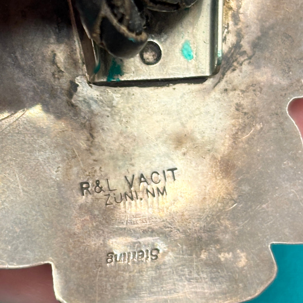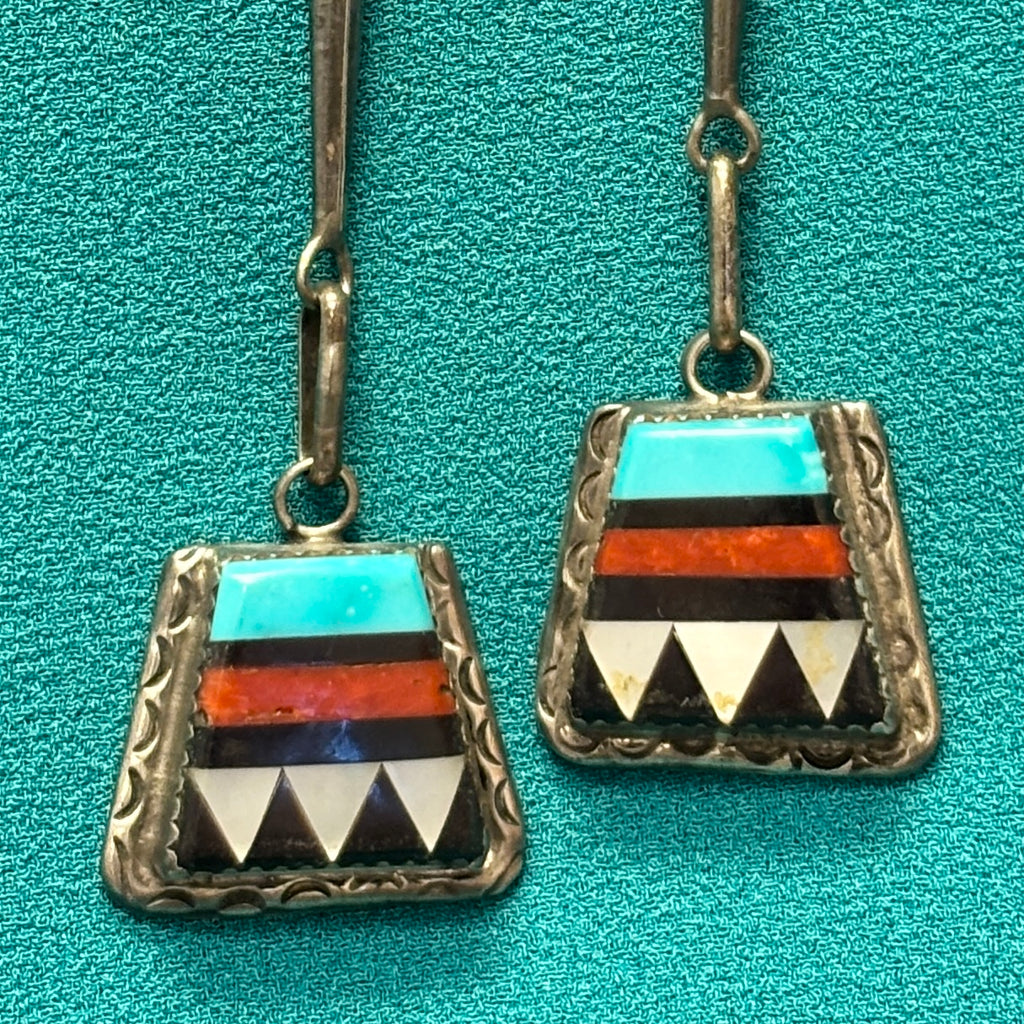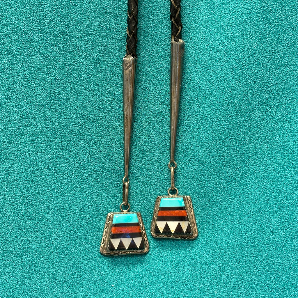 Ricky and Lucy Vacit Vintage Zuni Inlay Celebration Man on Sterling Silver Bolo Tie, authentic Native American (JF111)